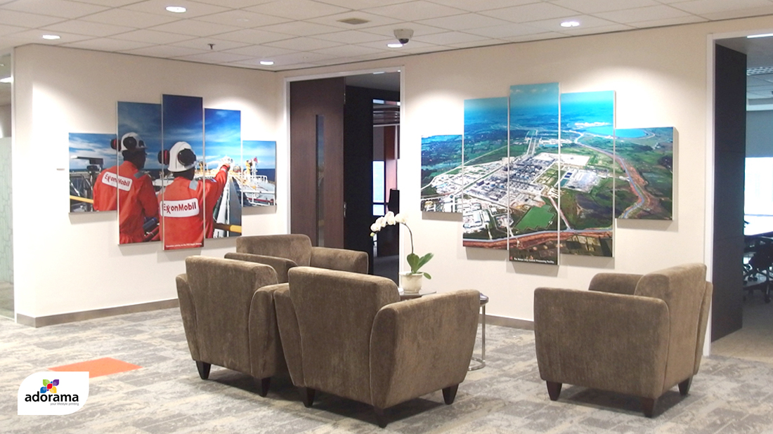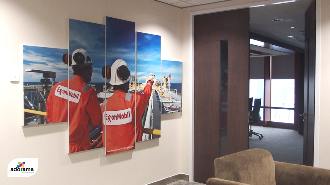 Exxon Mobil merupakan perusahaan multinational oli dan gas yang berasal dari America. Lokasi Exxon mobil yang terletak di Wisma GKBI Jl. Jendral Sudirman Bendungan Ilir. Exxon mobile membuat Canvas sebagai mempercantik tampilan ruangan dengan menggunakan bahan canvas latex dengan beberapa ukuran dalam bentuk kolase/bagian. Canvas latex ini sangat cocok memberikan kesan menarik dan unik untuk gambaran project yang pernah dikerjakan.