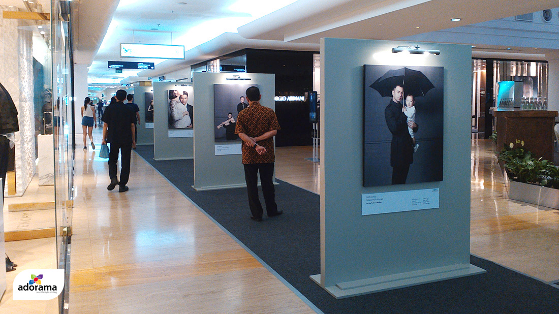Plaza Indonesia mengadakan pameran Foto sepanjang koridor lobby dengan object Foto adalah para public figure tanah air. Menggunakan Canvas Photo dengan spanram atau kayu belakang yang ready untuk digantung. Tampilan Photo canvas ini memberikan tampilan warna yang lebih detail dan warna yang lebih kontras sehingga tampilan menarik untuk Photo canvas print.